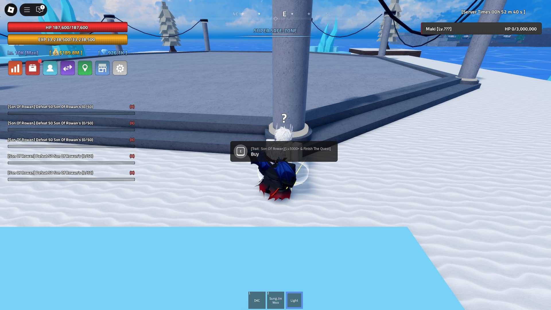 After you've done that, interact with the Boss Summoner NPC to spawn Son of Rowan and kill it. One spawn of this boss costs 50 Boss Tickets, and since you'll have to kill it 50 times, a total of 2,500 Boss Tickets is required. The Son of Rowan boss has 100M HP and is fairly hard to kill, so farming it with a party is recommended.