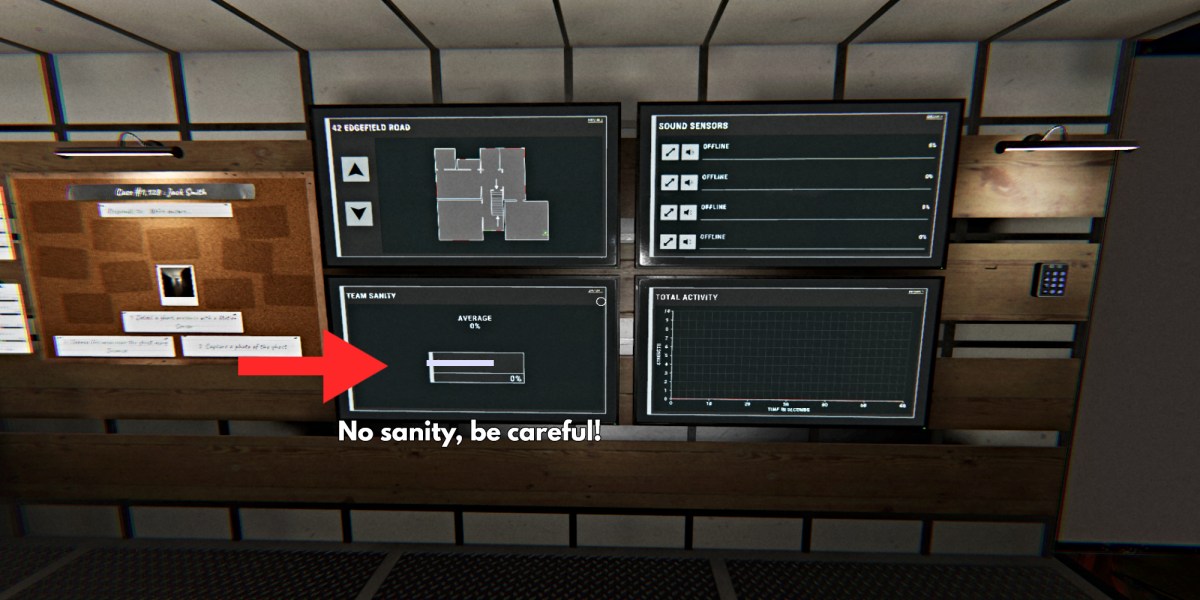 You also start this challenge with no setup time (well technically five seconds) and with zero sanity, which makes you immediately vulnerable to ghost hunts. Furthermore, sanity cannot be restored, even with the two Sanity Medications you’re jokingly provided. So be prepared to complete this investigation under those dangerous conditions.