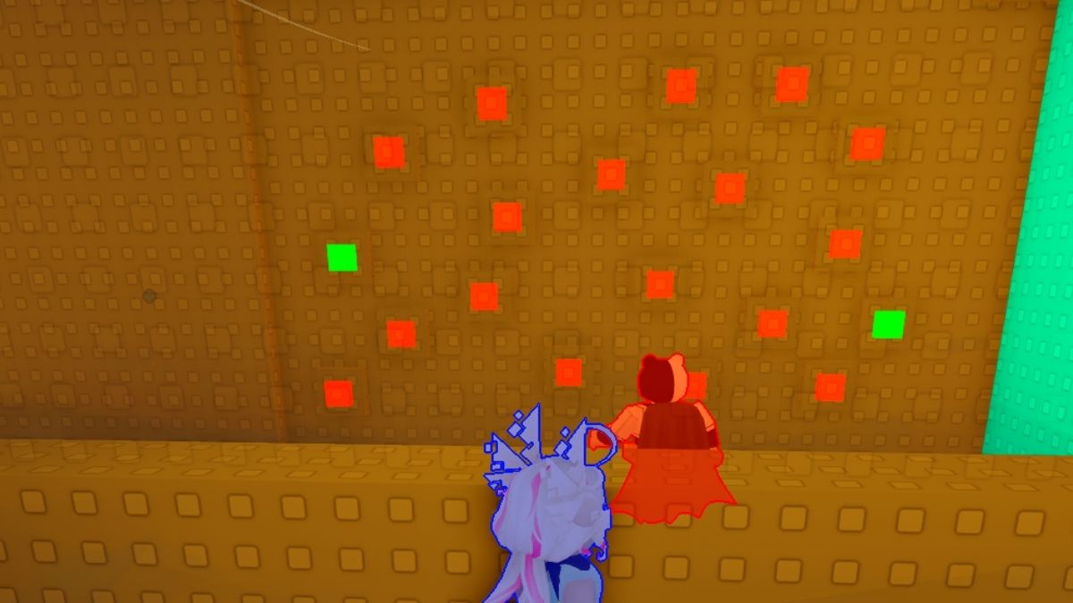 The button section can be very annoying until you figure it out, since the only instruction you get is to press the buttons in a specific order. Your goal is to find four blue buttons in four attempts so that you can cross the pit. You do this by pressing on random buttons. If you make a mistake on the fourth attempt, you will respawn and the puzzle will reset.